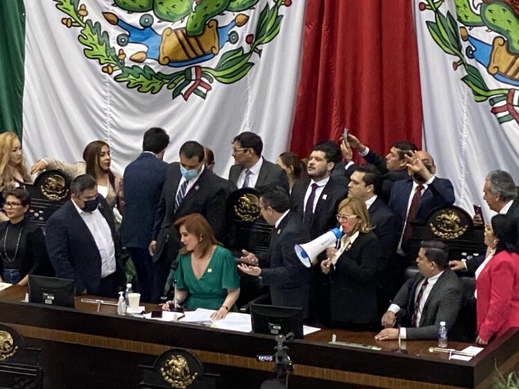 Hubo un receso y al regreso los de Morena, se reunieron afuera del pleno, Ursula hablaba por teléfono y Peor Braña vino a avisar ya la están votando.