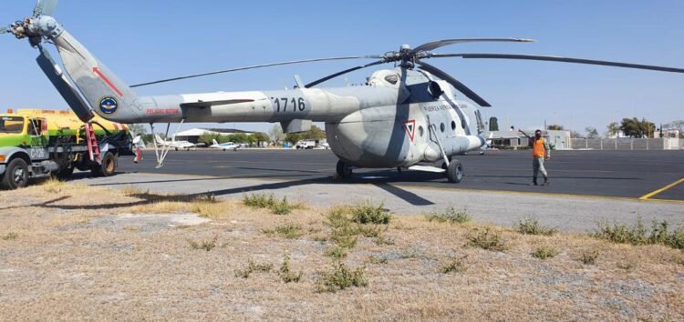 El helicóptero procede del aeropuerto de Santa Lucía en el Estado de México, es  un 303, de la Fuerza Aérea Mexicana.