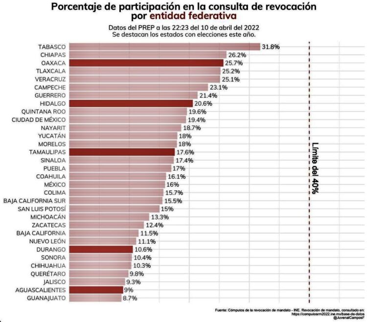Porcentajes de la revocación de mandato del presidente Andrés Manuel López Obrador por estado