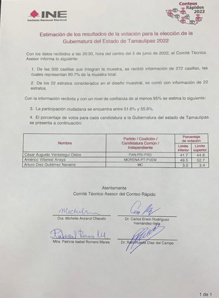 Encabeza Américo Villarreal Conteo Rápido en Tamaulipas