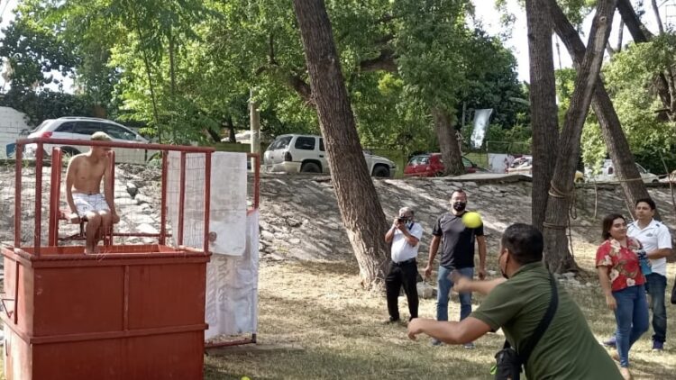 El juego del hombre al agua contó con la participación especial del equipo de beisbol Cardenales de la Liga Santa María de Aguayo, haciendo los peloteritos alarde de su puntería en el lanzamiento de pelota.