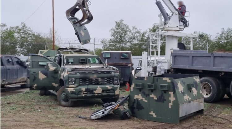 Los 11 vehículos están relacionados con nueve expedientes y cuentan con blindaje artesanal, fueron asegurados en diversos enfrentamientos en Nuevo Laredo y fueron utilizados presuntamente por grupos delictivos.