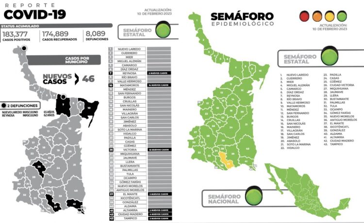 Este viernes, Tamaulipas registró 46 nuevos pacientes de COVID-19, con los cuales suman 183 mil 377 casos confirmados desde que inició la pandemia, informó la secretaría de Salud en Tamaulipas .