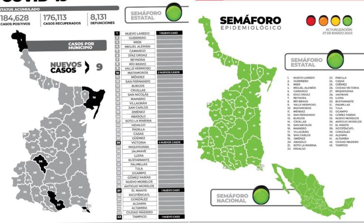 Desde el inicio de la pandemia, los casos reportados en Tamaulipas suman 184 mil 628 pacientes y 8 mil 131 defunciones.