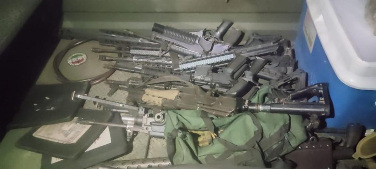Se logró el aseguramiento de 38 fusiles, un lanzagranadas, seis chalecos balísticos, siete paquetes con marihuana, así como cargadores y cartuchos.