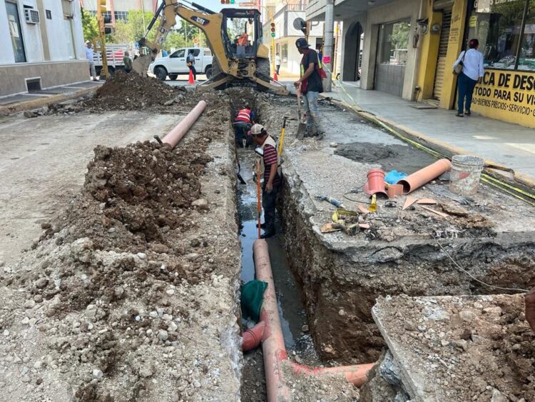 Actualmente se cuenta con un avance del 90% en los trabajos, los cuales contemplan el trazo y corte de carpeta asfáltica, instalación de tuberías, así como la sustitución de línea de drenaje de ocho pulgadas de diámetro de tubería PVC y reposición de 13 descargas sanitarias.