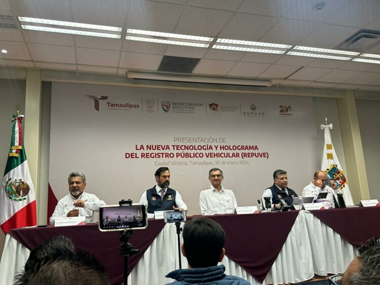 Ciudad Victoria, Tamaulipas.- El gobernador Américo Villarreal Anaya y el director general del Registro Público Vehicular, REPUVE, Javier Ulises Miranda Nieto, dieron a conocer que Tamaulipas es el primer estado del país que iniciará el proceso de colocación de hologramas de nueva generación para dar cumplimiento al acuerdo aprobado por el Consejo Nacional de Seguridad Pública que establece como obligatorio la colocación de la “Constancia de inscripción”, en los vehículos automotores.