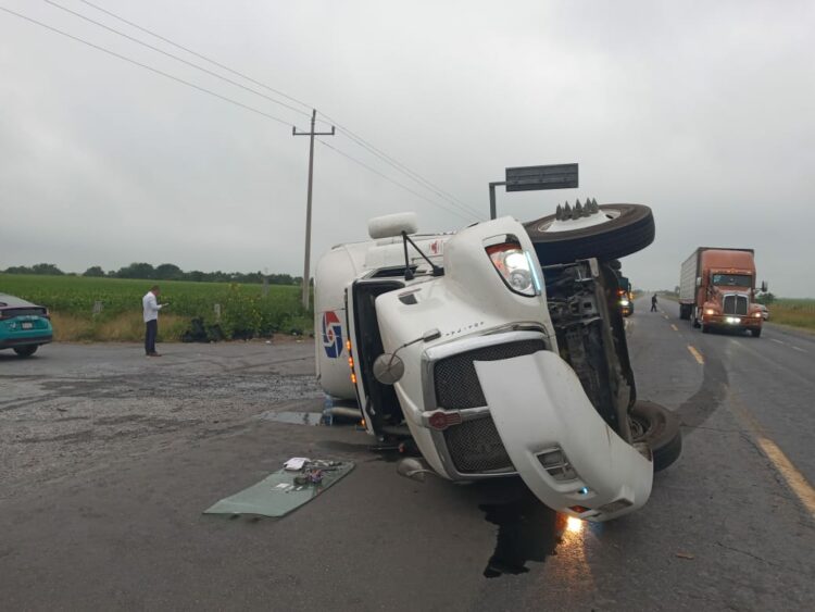 San Fernando, Tamaulipas.- Derivado a la volcadura de un tractocamión, la circulación de sur a norte de la carretera Federal 97 Reynosa-San Fernando está cerrada.