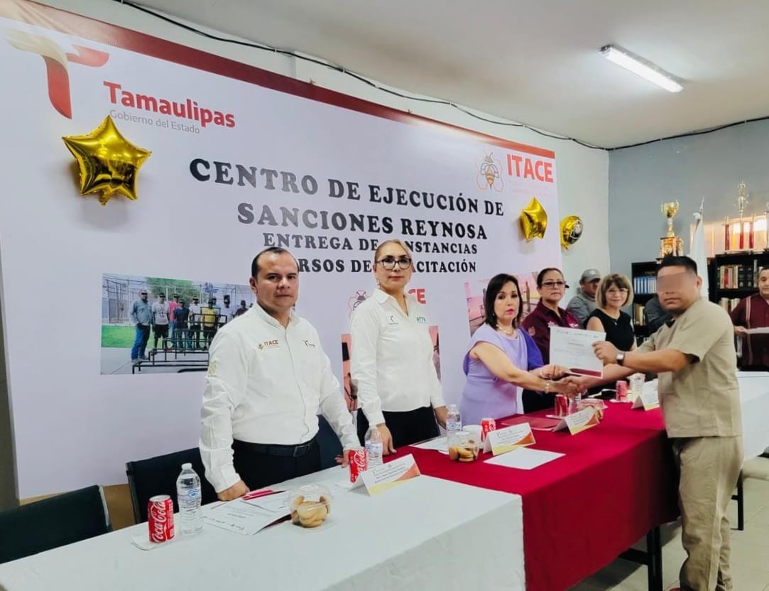 Reynosa, Tamaulipas.- Con una ceremonia formal de entrega de constancias, personas privadas de la libertad (PPLs) del Centro de Ejecución de Sanciones (CEDES) del municipio de Reynosa acreditaron las habilidades laborales adquiridas a través del Instituto Tamaulipeco de Capacitación para el Empleo (ITACE).