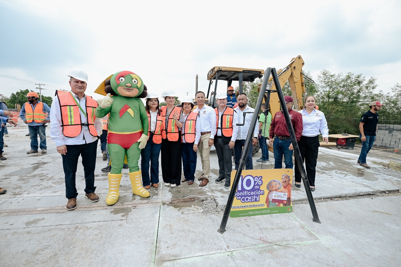 -Secretaria de Economía, Ninfa Cantú encabeza colocación de la primera piedra para construcción de la nueva unidad junto con la presidenta municipal Verónica Aguirre y Rodrigo Flores, director de Relaciones Institucionales de la empresa