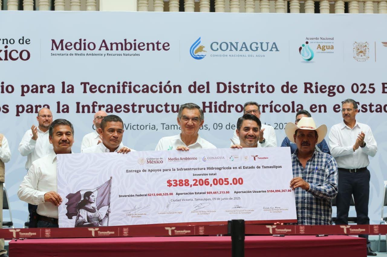 El Gobierno de México, mediante la Comisión Nacional del Agua (Conagua), en coordinación con el gobierno de Tamaulipas y los usuarios, tecnificará los distritos de riego 025 Bajo Río Bravo y 026 Bajo Río San Juan, como parte del Programa Nacional de Tecnificación de Riego, una iniciativa de la presidenta Claudia Sheinbaum Pardo, enfocada en producir más alimentos con menos agua, lo cual permitirá avanzar hacia la autosuficiencia alimentaria y generar ahorros de agua para destinarlos al consumo humano.