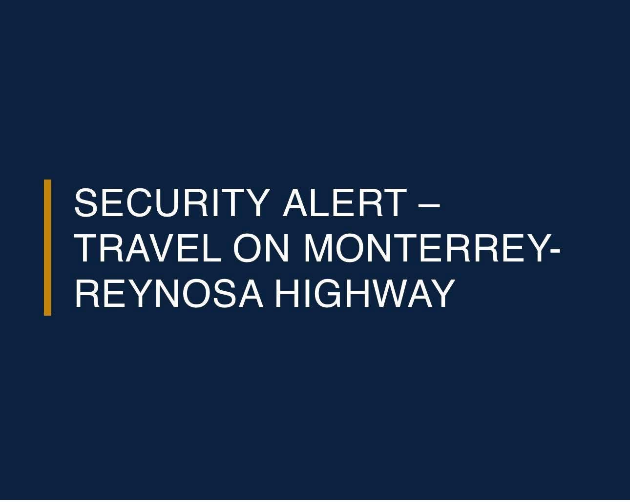 La Secretaria de Seguridad de Reynosa ha emitido un aviso para evitar viajar por la autopista Monterrey-Reynosa de noche y los riesgos que se utiliza la autopista especialmente en el tramo entre Cadereyta y Los Ramones. Los empleados del gobierno de los Estados Unidos no pueden viajar entre ciudades de Tamaulipas usando las autopistas interiores mexicanas. Viaje entre