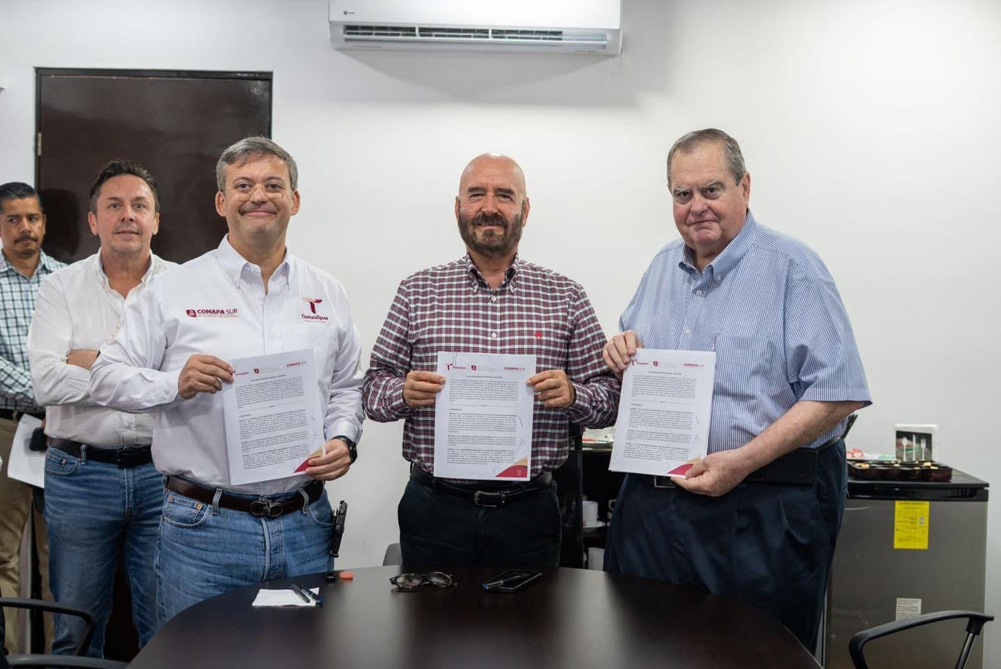 Con el objetivo de dar seguimiento al Acuerdo de Voluntades, suscribieron el acta administrativa de entrega- recepción de la información técnica y operativa relacionada con el sistema de alcantarillado y sanitario del sur de Tamaulipas.