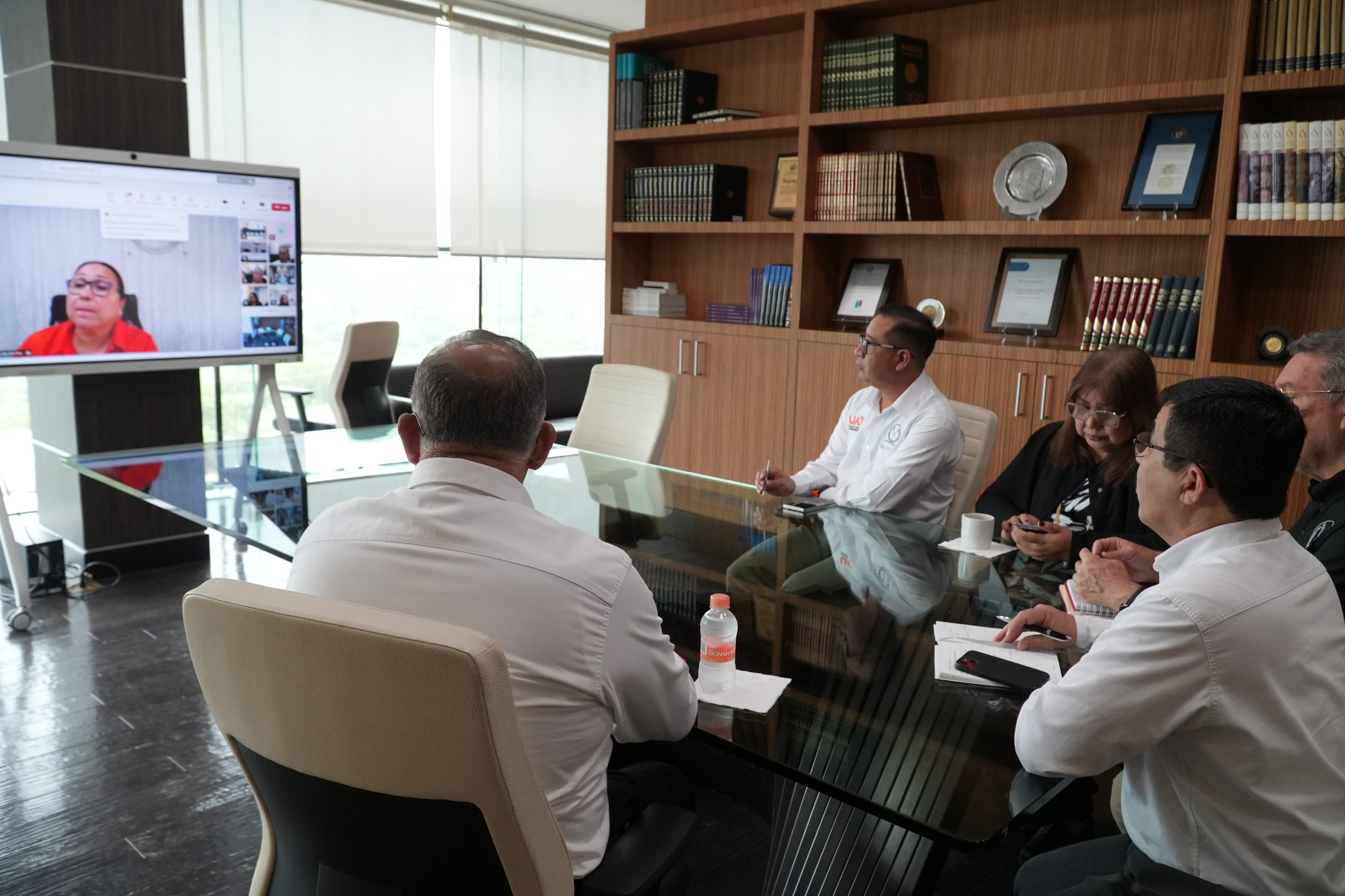 El rector de la Universidad Autónoma de Tamaulipas (UAT), Dámaso Anaya Alvarado, sostuvo una reunión virtual con directores y directoras de las dependencias académicas de los campus Sur, Mante y Victoria, a fin de evaluar las medidas que se han implementado para proteger la integridad de la comunidad universitaria durante la contingencia meteorológica que se ha presentado en la región.