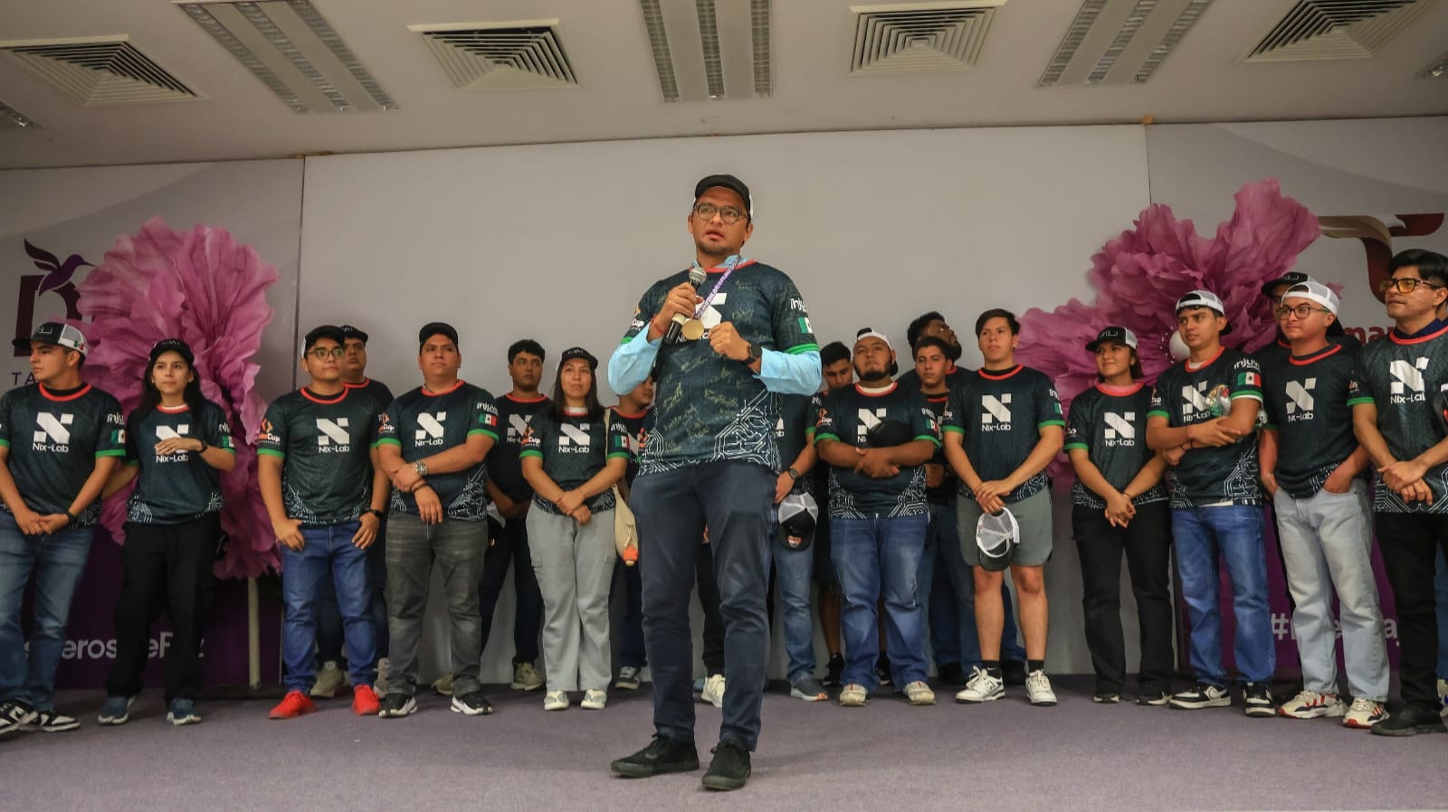 Ciudad Victoria, Tamaulipas.- En un protocolo emotivo, repleto de familiares y talento tamaulipeco, el secretario de Desarrollo Energético de Tamaulipas, Walter Julián Ángel Jiménez, despidió a las y los integrantes de Nix-Lab rumbo a la Robo Cup Brasil 2025.