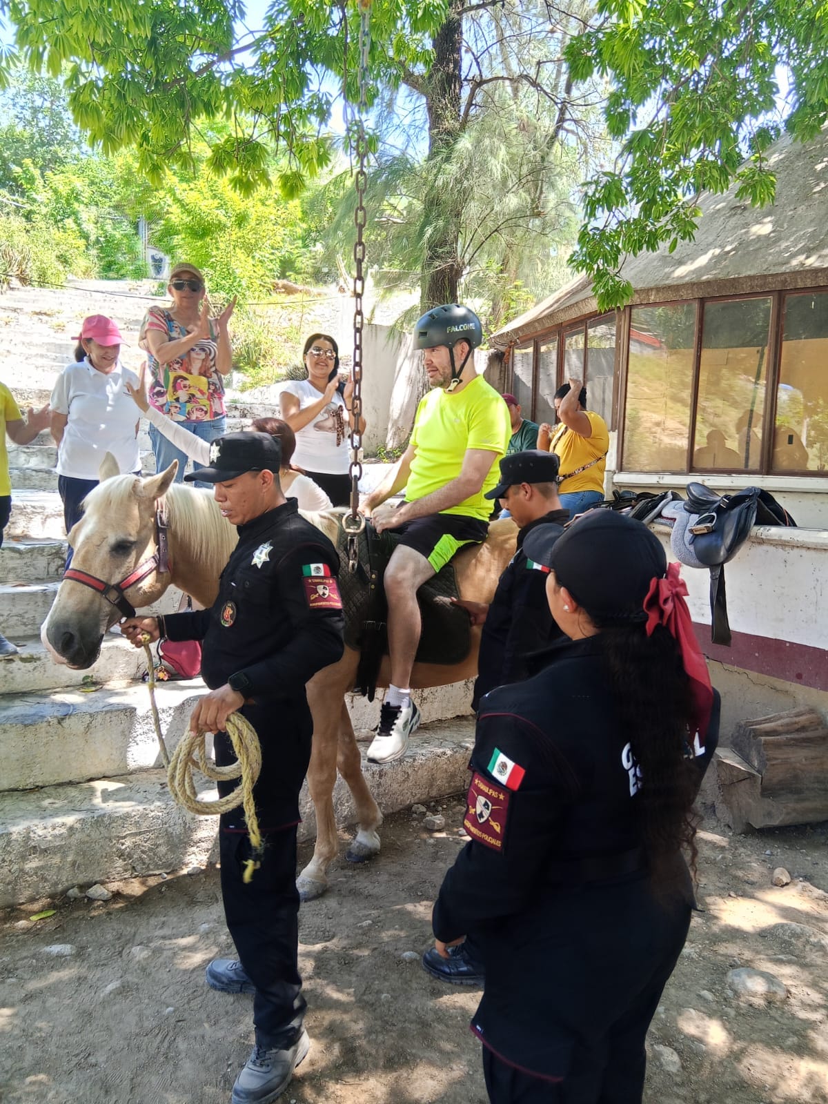 Ciudad Victoria, Tamaulipas.- Acorde con la política humanista del gobernador, Américo Villarreal Anaya, la Secretaría de Seguridad Pública de Tamaulipas (SSPT) recibió a personas con diversidad funcional, integrantes de la Asociación Civil Falcone para llevar a cabo sesiones de equinoterapia en las instalaciones del Agrupamiento Montado de la Guardia Estatal.
