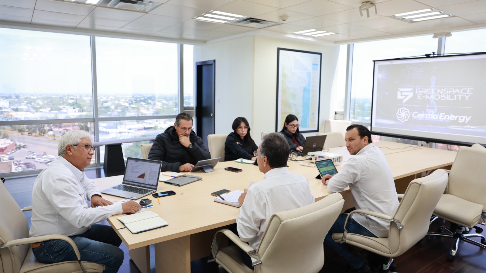En reunión con la empresa de Corporación de Obras Cermo – Greenspace E- Mobility, el subsecretario de Electricidad y Energías Renovables, Roberto Manuel Rendón Mares, dieron seguimiento al proyecto de instalación del primer cargador público para vehículos eléctricos, que se estará ubicando en el Parque Bicentenario.