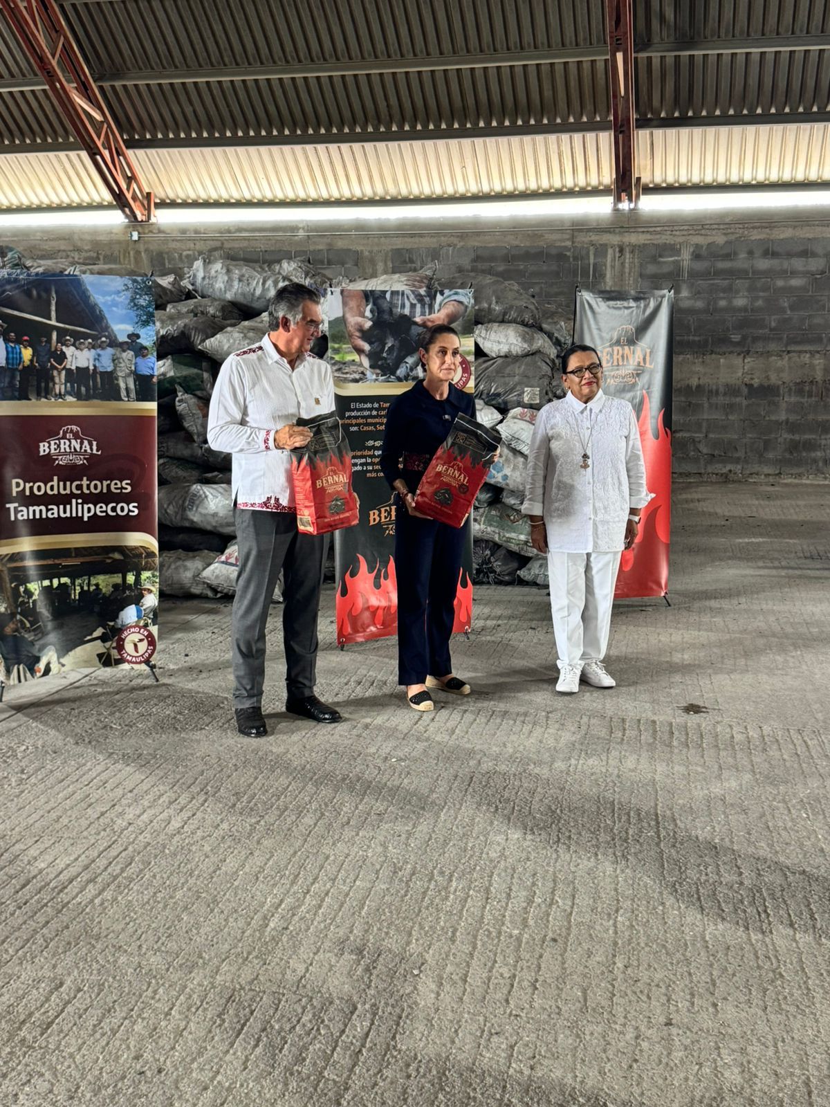 Ciudad Victoria, Tamaulipas. – Como parte de su visita a la capital del estado para presentar su Primer Informe de Gobierno a las y los tamaulipecos, la presidenta de México, Claudia Sheinbaum Pardo, recorrió las instalaciones de la empacadora de carbón vegetal “El Bernal”, una iniciativa impulsada por el gobernador Américo Villarreal Anaya con el objetivo de agregar valor al producto local y garantizar precios justos a las y los productores de la región.