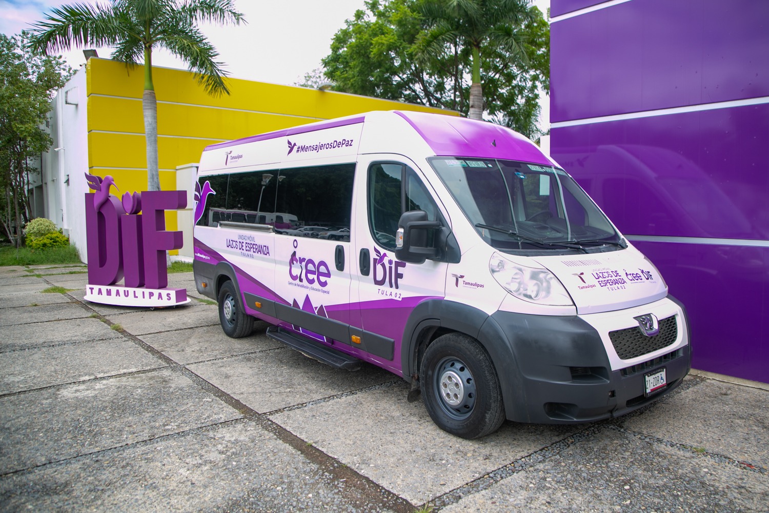 Ciudad Victoria, Tamaulipas.- El Sistema DIF Tamaulipas, presidido por la doctora María de Villarreal, entregó una unidad de transporte adaptado para la ruta “Lazos de Esperanza” al municipio de Tula, con el objetivo de fortalecer la atención a personas con discapacidad que requieren este servicio.