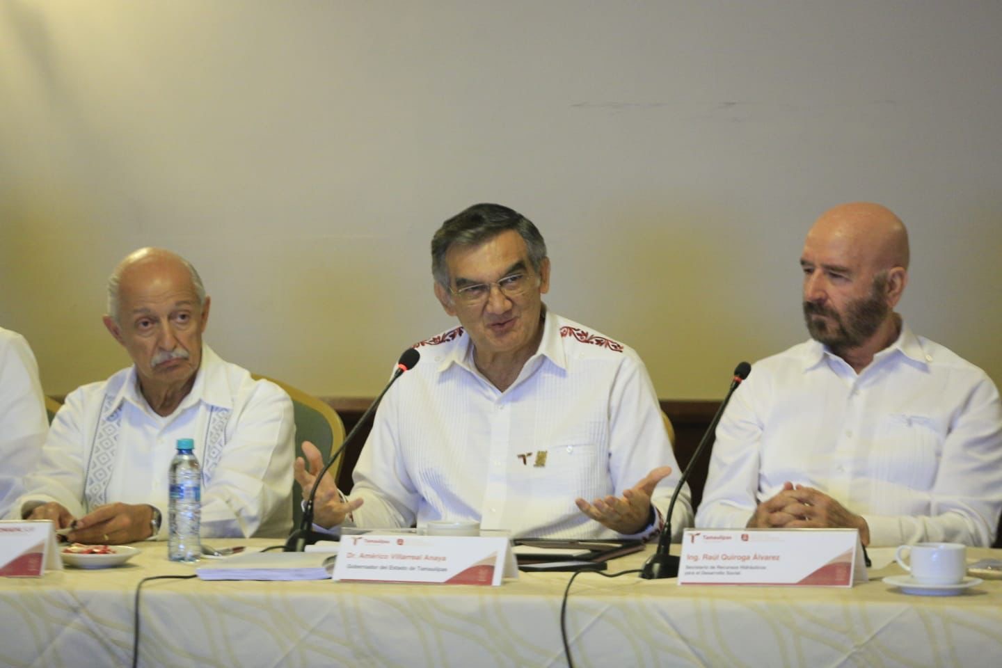 Durante la reunión de trabajo en el Club de Industriales de Tampico, junto con el secretario de Recursos Hidráulicos, Raúl Quiroga; el secretario general de Gobierno, Héctor Joel Villegas; la presidenta municipal de Tampico, Mónica Villarreal Anaya, y el alcalde de Madero, Erasmo González Robledo, Villarreal Anaya firmó el convenio específico de colaboración entre el Gobierno de Tamaulipas y la Asociación de Industriales del Sur de Tamaulipas.