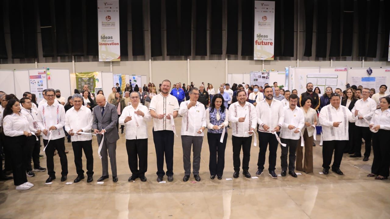 Tampico, Tamaulipas.- Al inaugurar la ExpoCiencias Nacional Tamaulipas 2025, un encuentro que reúne a 1500 participantes con los 500 mejores proyectos de ciencia, innovación y tecnología, elaborados por niños, niñas y jóvenes, el gobernador Américo Villarreal Anaya refrendó todo su apoyo para seguir con la visión de la presidenta Claudia Sheinbaum y poner el conocimiento y el avance científico a favor del bienestar social.
