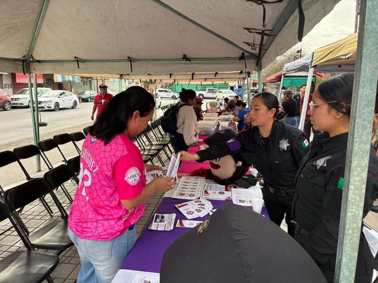 En el municipio de Matamoros, en la Plaza Allende ubicada en la Zona Centro se instaló un módulo, donde elementos de esta corporación sostuvieron el diálogo con la ciudadanía, principalmente, mujeres, a quienes les entregaron trípticos y violentómetros.